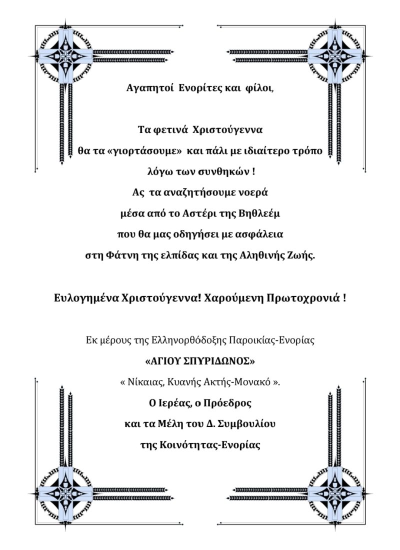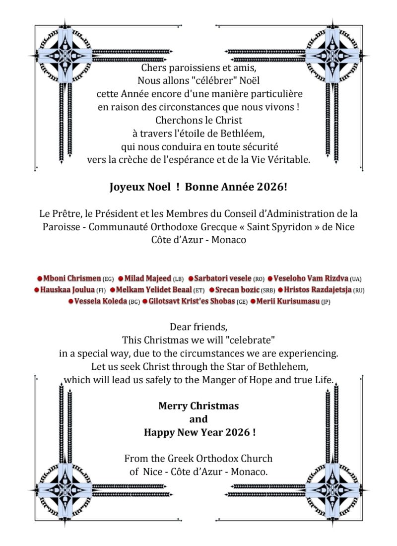 De la part du Recteur de notre paroisse Michail Seliniotakis et du Bureau de notre Association orthodoxe grecque de Nice, Côte d’Azur et Monaco.